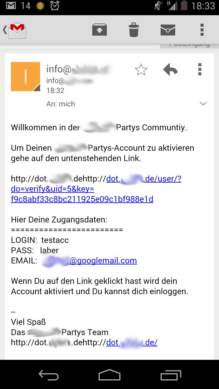 | Autor | Thema: Aktivierungsemail URL Problem | |||||
