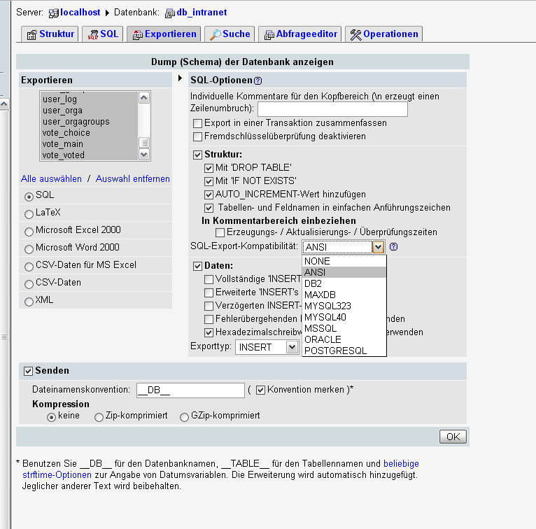 DOTLAN Intranet / Portal >> Probleme und Fehler > Importprobleme bei untersch. MySQL-Versionen |